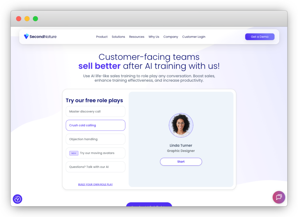 - Second Nature AI: A conversational simulation platform that delivers dynamic, AI-driven roleplay across customer-facing scenarios.