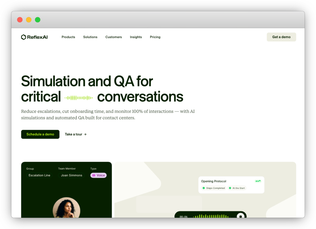 - Reflex AI: A simulation and evaluation platform designed to test and improve conversational AI systems through realistic, scenario-based interactions.