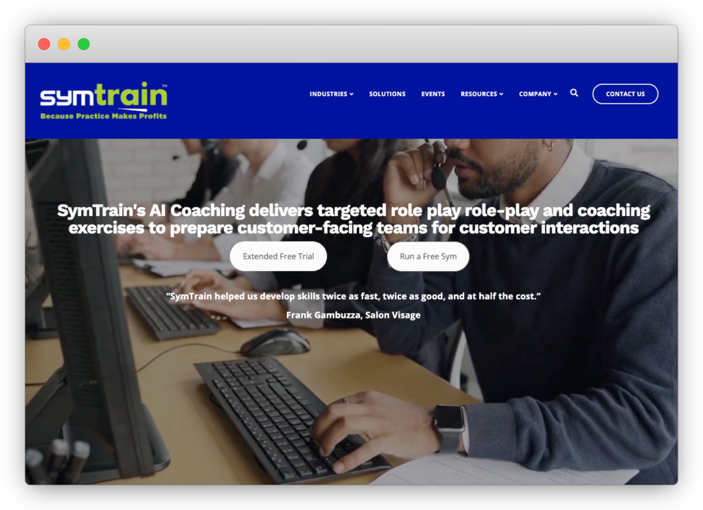 - Symtrain: An AI-driven training platform that uses conversational roleplay and feedback to help agents build skills and improve performance.